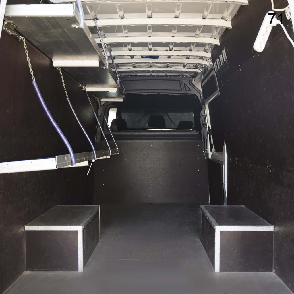 Камерваген оптимально обустроен профессиональными стеллажами, креплениями с сохранением свободного пространства для размещения оборудования и кейсов различных габаритов. Камерваген оборудован боковой и задними дверями.
